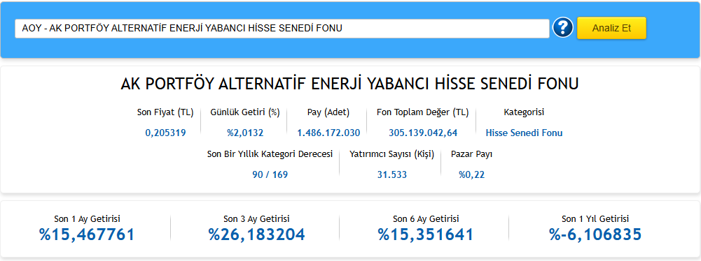 AOY - AK PORTFÖY ALTERNATİF ENERJİ YABANCI HİSSE SENEDİ FONU YORUMU