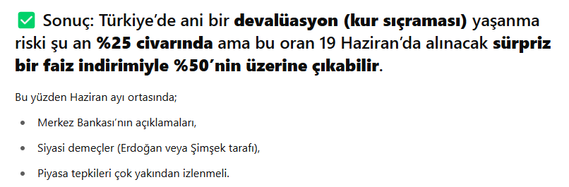 Bu faiz önümüzdeki toplantıda sabit kalırsa veya artarsa kur şoku yaşanması zor. Ancak yüksek bir düşüş yaşanırsa kur şoku olabilir. Yani dolar bi anda artar.
