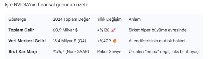 NVIDIA, grafik işlemcisi üreten bir şirketten, dünyanın dijital altyapısını kuran bir deve dönüştü. Finansal tabloları kusursuz, teknolojisi rakipsiz ve ekosistemi kilitlenmiş durumda. Ancak hiper ölçekleyicilerin (Google, AWS) kendi çiplerini üretmesi ve antitröst baskıları, önümüzdeki yılların NVIDIA için daha çetin geçeceğini gösteriyor.